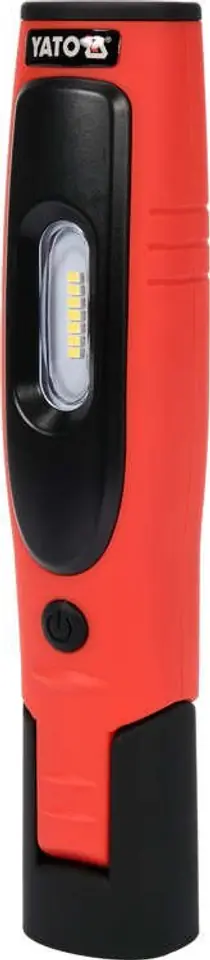 Akumulatorowa lampa warsztatowa YATO ze światłem głównym 330lm oraz latarką 80lm. Model wyposażony w pojemną, litowo-jonową baterię o pojemności 2600mAh zapewni minimum 4h ciągłej pracy. Wykonany z wytrzymałych materiałów, m.in. ABS i poliwęglanu, które zapewniają klasę ochrony mechanicznej IK07 oraz klasę szczelności IP54. Obrotowy korpus, 2 haczyki oraz 3 magnesy umożliwią właściwe ustawienie strumienia światła