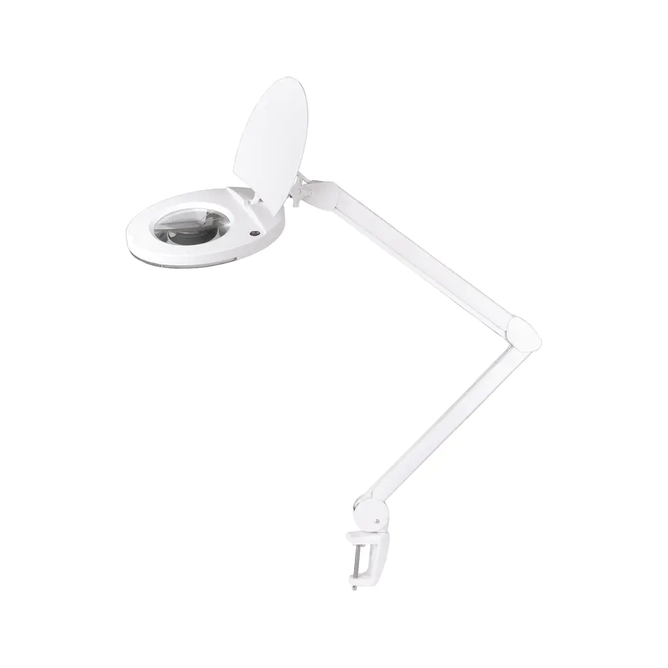 Soczewka: szklanaWymiary soczewki: 5" (127 mm)Średnica soczewki z obudową: 260 mmPowiększenie: 5 dioptriiŹródło światła: 60x 2835 SMD Strumień świetlny: 650 lmTemperatura barwowa: 6500 KEfektywność: 95 lm/WMoc: 8 WRegulowane ramięMetalowy zacisk typu GMontaż: do stołuKolor: białyŻywotność: 25 000 hZasilanie: AC 220 - 240 V; 50 HzMontaż do stołu.