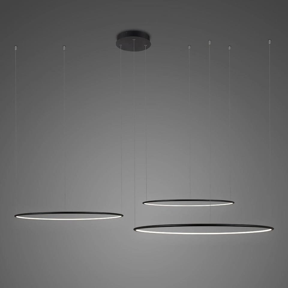 Lampa wisząca Ledowe Okręgi No.3 150cm 4k czarna Barwa światła barwa dzienna, Kierunek padania światła do wewnątrz, Kolor Czarny, Możliwość ściemniania nie