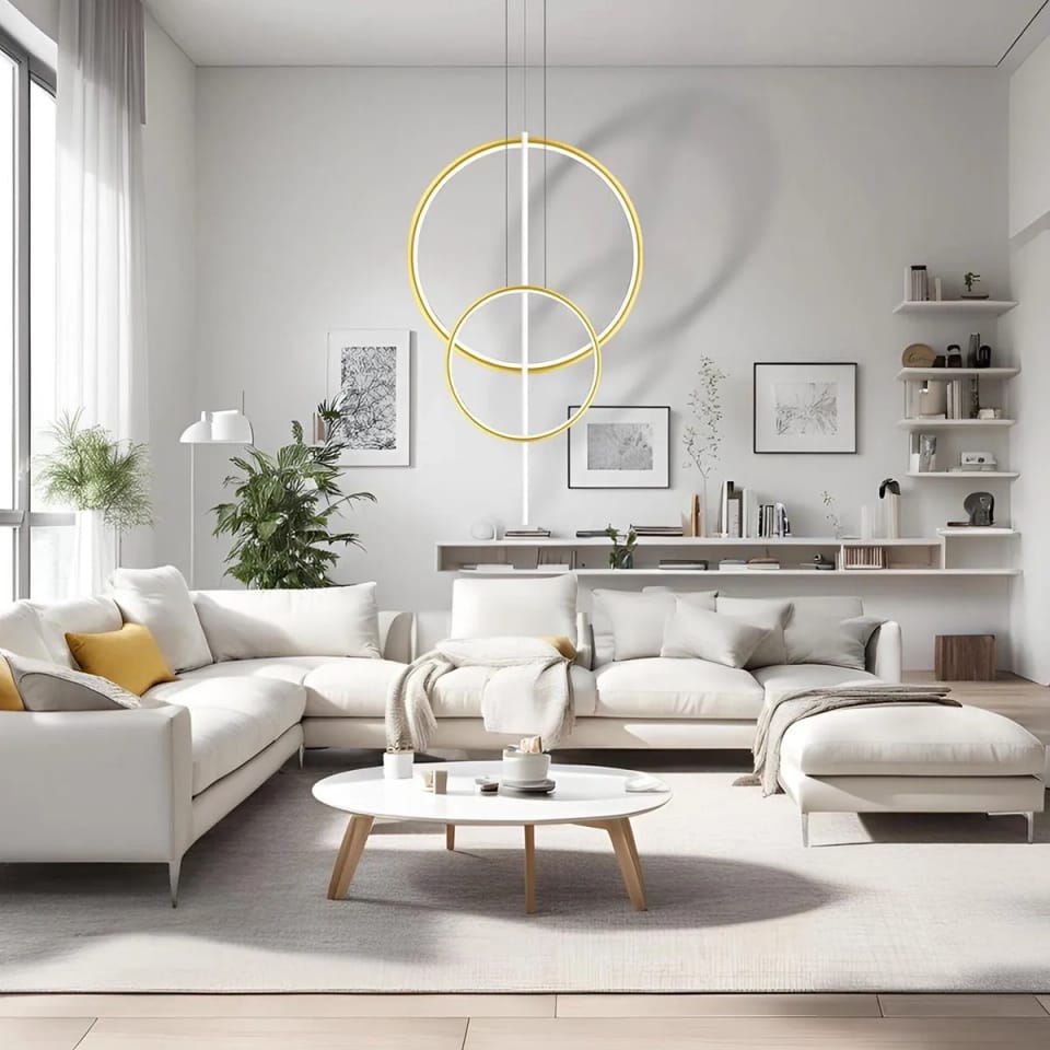 Lampa wisząca Linea No.5 60/40cm złoto-biała Dali3k Barwa światła delikatnie ciepła, Kolor Biały, Możliwość ściemniania tak