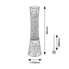 Cechy- Smukła lampa dekoracyjna- Będzie wspaniałym dodatkiem do wyposażenia salonu, sypialni czy pokoju dziecięcego- Wykonana z tworzywa sztucznego i szkła- Przestrzenny wzór na oprawie- Efekt brokatowej dekoracji wewnątrz lampy- Źródło światła w zestawie