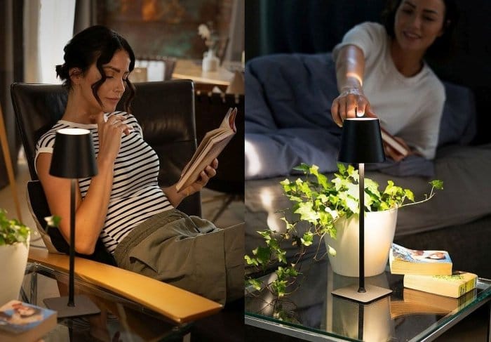 Lampka LED z wbudowanym akumulatorem Classbach C-TL 4025Odkryj wyjątkową lampkę stołową LED, która dzięki możliwości ładowania idealnie sprawdzi się w każdym miejscu – w ogrodzie, jadalni, sypialni czy salonie. Classbach C-TL 4025 stworzona jest z myślą o wygodzie - działa bezprzewodowo, co pozwala na pełną swobodę ustawienia, a jej wytrzymała obudowa z klasą ochrony IPX gwarantuje odporność na zachlapania i deszcz – jest więc doskonała zarówno do użytku wewnątrz, jak i na zewnątrz.Wydajna bateria, którą naładujesz za pomocą dołączonego kabla USB-C, zapewnia aż do 10 godzin pracy na jednym ładowaniu. Dzięki dotykowemu czujnikowi obsługa lampki jest intuicyjna i prosta – możesz swobodnie regulować poziom jasności*, aby dopasować ją do nastroju i potrzeb. Lampka emituje przyjemne, ciepłe białe światło o barwie 4000K, które doskonale podkreśla atmosferę wieczoru, a funkcja RGB pozwala wybierać spośród szerokiej gamy kolorów (biały, czerwony, magenta, niebieski, cyjan, zielony) oraz ustawić automatyczną zmianę barw, tworząc wyjątkowy klimat. Stabilna i odporna na zarysowania podstawa gwarantuje bezpieczeństwo użytkowania, a wysokość 38 cm sprawia, że lampka jest idealnym dodatkiem do każdego wnętrza lub przestrzeni na świeżym powietrzu.* funkcja ściemniania dotyczy światła białego; kolory RGB nie posiadają tej funkcjiNajważniejsze cechy lampki LED Classbach C-TL 4025:Kolor: czarnyŁadowalna lampka stołowa LED do bezprzewodowego użytku w ogrodzie, jadalni, sypialni itp.Odpowiednia do użytku wewnętrznego i zewnętrznegoIPX – ochrona przed zachlapaniem i deszczemBezprzewodowe użytkowanie dzięki wbudowanej baterii (ładowanie USB-C) Czas pracy na baterii do 10 godzinObsługa dotykowa z czujnikiemAtmosferyczne, ciepłe białe światło (4000 K)Funkcja ściemnianiaWybór kolorów RGB (biały, czerwony, magenta, niebieski, cyjan, zielony)Tryb automatycznej zmiany kolorówBezpieczna, odporna na zarysowania podstawaWysokość: 38 cmAkcesoria: kabel do ładowania USB-COznaczenia CE - spełnia wszystkie restrykcyjne normy UEZasilanie: 2x akumulator litowo-jonowy; 3,7 V; 1200 mAh; 36,51 gUWAGA! Należy używać wyłącznie zasilacza DC 5 V, 1 A (nie wchodzi w zakres dostawy)Dlaczego warto wybrać lampkę LED Classbach C-TL?Bezprzewodowa i przenośna Dzięki ładowanej baterii może działać w dowolnym miejscu bez konieczności podłączenia do gniazdka.Długi czas pracy Wydajna bateria pozwala na 10 godzin pracy na jednym ładowaniu, co jest idealne na wieczorne spotkania.Funkcja RGB z wyborem kolorów Możliwość zmiany barw (biały, czerwony, magenta, niebieski, cyjan, zielony) oraz automatyczne przełączanie między nimi pozwalają na tworzenie wyjątkowego klimatu.Odporność na warunki atmosferyczne Obudowa o klasie ochrony IPX zapewnia odporność na zachlapania i deszcz, co umożliwia użytkowanie zarówno wewnątrz, jak i na zewnątrz.Idealna na prezentUrządzenie posiada eleganckie opakowanie, dzięki czemu idealnie sprawdzi się, jako prezent!Wymiary lampki:Wymiary: (ok. szer. x wys. x gł.)Urządzenie: 105 x 380 x 105 mm; 0.61 kgOpakowanie: 110 x 410 x 110 mm; 0.78 kg...