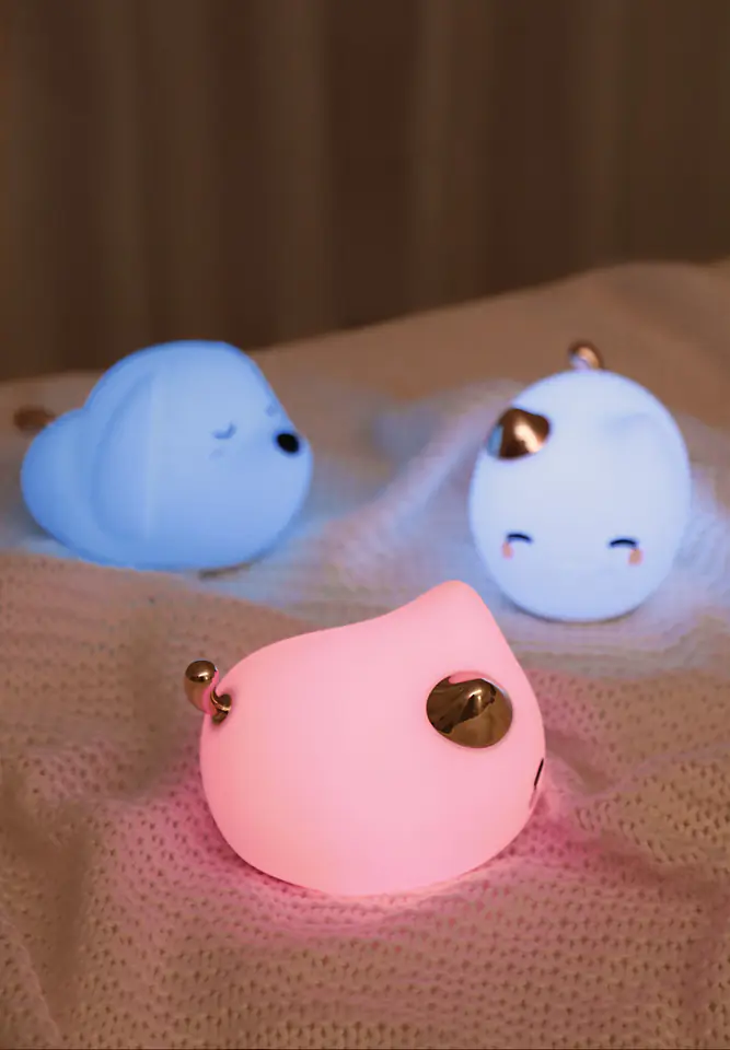 Lampka świeci w trzech trybach: zmienny kolor RGB, stały wybrany kolor, ciepłe światło białe. Jest to niesamowicie proste i szybkie w obsłudze urządzenie dla każdego. Aby zmienić tryb, należy lekko stuknąć lampkę nocną.