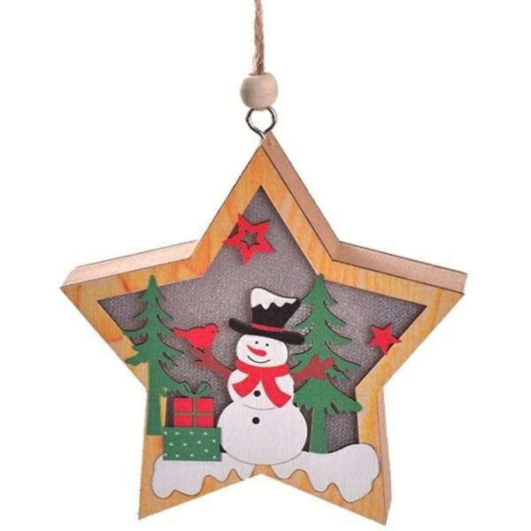 Lampka Świąteczna Drewniana Bałwanek - Gwiazdka