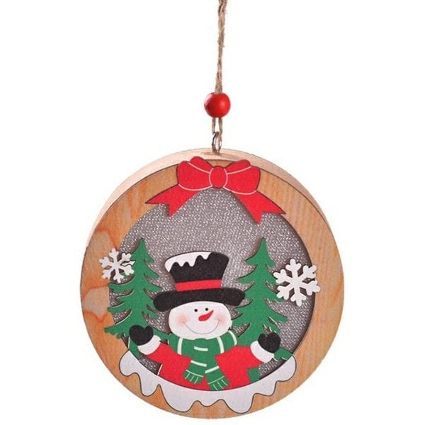Lampka Świąteczna Drewniana Bałwanek - Okrągła