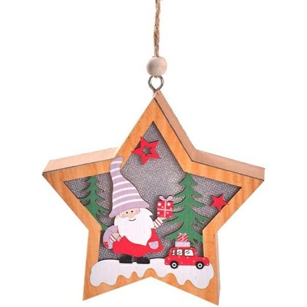 Lampka Świąteczna Drewniana Skrzat i samochód - Gwiazdka