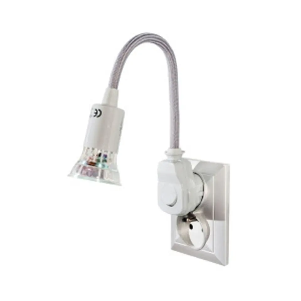 Lampa wtyczkowa LED z regulowanym ramieniem, który umożliwia wygodną regulację kierunku świecenia oraz wyłącznikiem ON/OFF. Idealnie sprawdzi się jako lampka nocna lub do oświetlenia blatu roboczego. Źródło światła: 21 diod LED, oprawka: GU 10, dostępne kolory: popielaty oraz czarny.