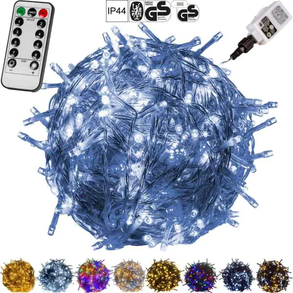 Lampki choinkowe 400 LED 40 m zimne białe IP44 Pilot Programator
