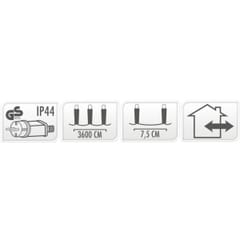 Lampki LED, które można stosować zarówno w domu, jak i na zewnątrz. Rozświetlą zimowy czas, wprowadzą świąteczną atmosferę oraz przyciągną wzrok każdego z naszych gości. Oświetlenie sprawdzi się do ozdobienia elewacji domu, balkonu, tarasu, ogrodu, czy witryn sklepowych. Swoją rolę spełni także wewnątrz – zdobiąc choinkę, parapet lub kominek. Oświetlenie świąteczne posiada zielony kabel z 480 diodami LED świecącymi białym, zimnym światłem. Intensywny blask lampek pięknie rozświetla panujący nocą mrok i stwarza magiczny, bajkowy klimat. Parametry produktu: - liczba diod LED: 480 - adapter (klasa ochrony) IP44 – zewnętrzne/wewnętrzne - długość: 3600 cm - długość kabla zasilającego; 300 cm - rozstaw między lampkami: 7,5 cm - długość żarówki:0,5 cm - barwa światła: biały zimny - zasilanie: sieciowe, IP44