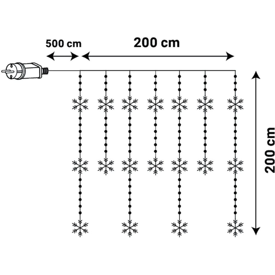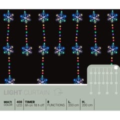 LAMPKI CHOINKOWE KURTYNA ŚWIETLNA 200x200 CM 408LED to połączenie stylu, funkcjonalności i magii. Wybierz wzór – gwiazdę lub płatek śniegu – i ciesz się delikatnym blaskiem, który otuli Twój dom ciepłem i świątecznym urokiem.