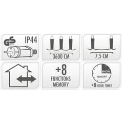 Ten łańcuch świelny ma aż 480 gęsto ułożnych bo, co 7,5 mm diod LED, dzięki temu gwarantuje wspaniały efekt świetlny, który na pewno przyciągnie wzrok i sprawi, że wokół zapanuje wspaniały, świąteczny klimat.