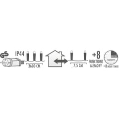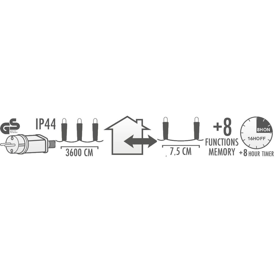 Ten łańcuch świelny ma aż 480 gęsto ułożnych bo, co 7,5 mm diod LED, dzięki temu gwarantuje wspaniały efekt świetlny, który na pewno przyciągnie wzrok i sprawi, że wokół zapanuje wspaniały, świąteczny klimat.