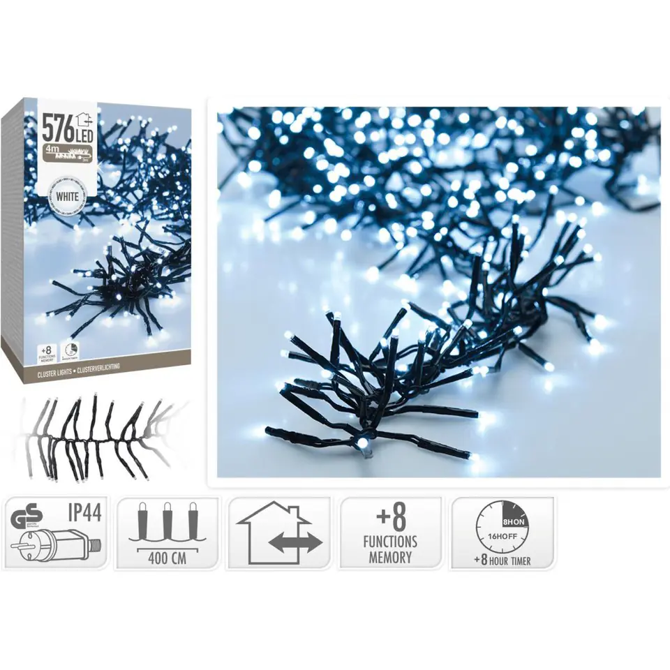 - 576 białych diod LED pięknie oświetli każdą choinkę, dom, okno czy witrynę sklepowąwykonane z wysokiej jakości materiałów są źródłem zimnego, białego światłamogą być używane zarówno wewnątrz jak i na zewnątrz pomieszczeńdziałają znacznie dłużej od tradycyjnych lampek, nie nagrzewają się i zużywają mniej prądu posiadają 8 trybów świecenia do wyborufunkcja timera, rozświetli drzewko w regularnych odstępach czasu bez potrzeby włączania i wyłączaniaposiadają certyfikat CE