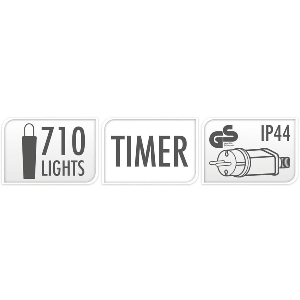 Dzięki aż 710 diodom uzyskasz równomierne, gęste oświetlenie całej choinki, balkonu lub ściany. To zestaw, który daje efekt światła premium, przy niskim zużyciu energii.