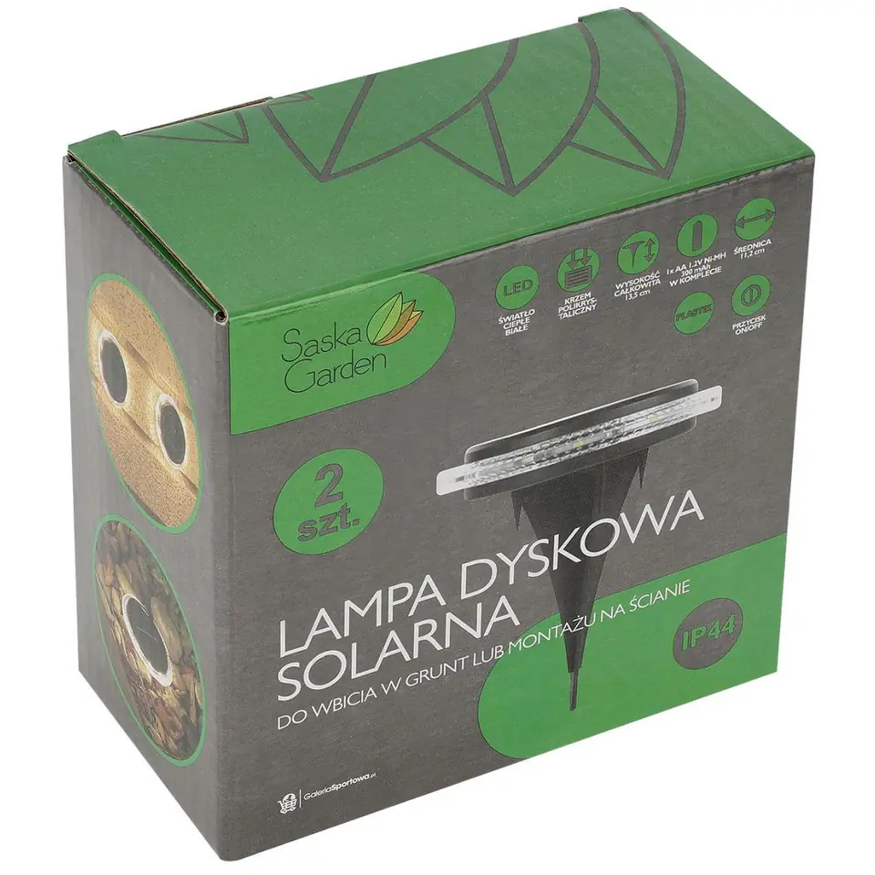 LAMPY SOLARNE DYSKOWE DO WBICIA W GRUNT LUB MONTAŻU NA ŚCIANIE 2SZT to praktyczne i niedrogie źródło światła, które sprawdzi się przede wszystkim na zewnątrz.