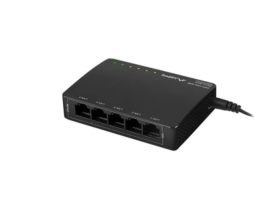 Lanberg DSP3-1005-60W to niewielkich rozmiarów niezarządzalny desktopowy przełącznik PoE+, wyposażony w 5 portów Gigabit Ethernet, w tym 4 PoE z realnym 60 W budżetem PoE dla urządzeń końcowych w tym standardzie. To niezwykle poręczne urządzenie działa na zasadzie Plug-and-Play. Przełącznik zapewnia wsparcie funkcji przełączania dla 5 portów RJ-45 10/100/1000 Mbps wraz z automatyczną negocjacją połączenia oraz obsługą MDI-MDIX.