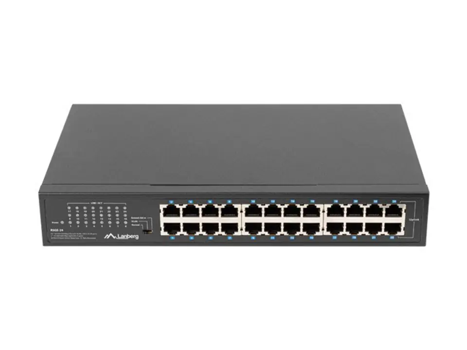 Przełączniki Lanberg posiadają funkcję umożliwiającą odseparowanie wszystkich standardowych portów między sobą (1 ~ 22), jednocześnie umożliwiając transmisję każdemu z nich tylko z portami typu Uplink (23 ~ 24). Wystarczy przełączyć przycisk na pozycję VLAN na obudowie, aby zapewnić separację portów.