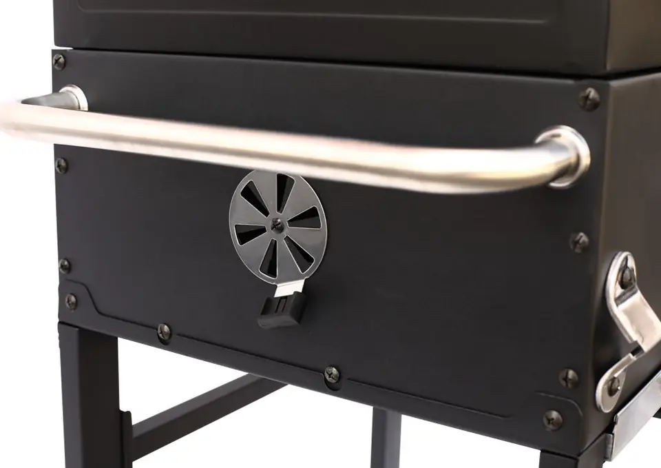| Pozostałe parametry: | Wskaźnik temperatury w pokrywie, Sterowanie temperaturą grillowania za pomocą płynnej regulacji wysokości paleniska, Zamykana klapa paleniskowa umożliwiająca łatwy i wygodny dostęp do miski paleniskowej i uzupełnianie paliwa, Stabilna składana półka boczna z metalu z wieszakiem na akcesoria, Chromowany ruchomy ruszt do podgrzewania zawieszony w pokrywie |
