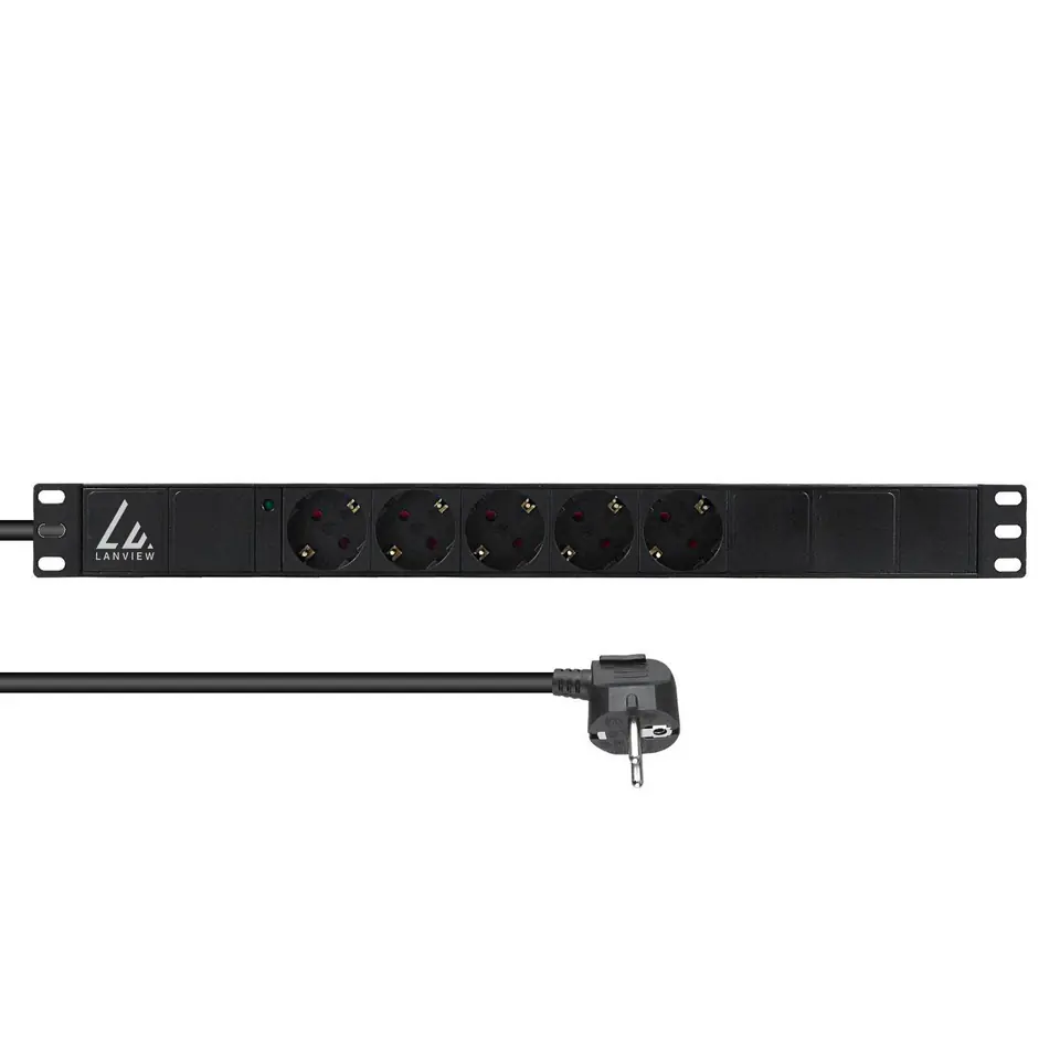 | Opis: | Lanview 19" rack mount power strip, 1U, 10A with 5 x Schuko type F socket. |