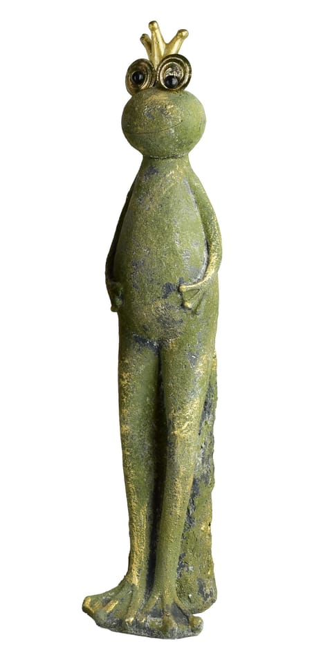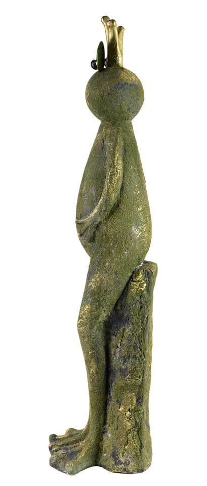 LARI Figura żaba 18x21,5x88CM.Figura żaby LARI o imponujących wymiarach 18 21,5 88 cm to dekoracja, która natychmiast przyciąga spojrzenia swoją smukłą sylwetką i wyjątkowym urokiem. Wykonana z trwałego MGO, prezentuje się lekko i finezyjnie, jakby została uchwycona w eleganckiej pozie. Jej piękne, wyraziste oczy dodają postaci życia i sympatycznego, niemal bajkowego charakteru, a złota korona wieńcząca głowę podkreśla jej królewski, humorystyczny wdzięk. Wysoka forma sprawia, że żaba LARI staje się wyrazistym elementem dekoracyjnym. Idealnym zarówno do wnętrza, jak i na zadaszony taras, gdzie wprowadza do aranżacji lekkość, elegancję i odrobinę fantazji. To ozdoba, która potrafi rozświetlić przestrzeń swoją obecnością, tworząc ciepłą, przyjazną atmosferę. Ze względu na materiał oraz delikatne wykończenie nie należy pozostawiać żabci na mrozie ani w deszczu, aby zachowała swój urok przez kolejne sezony.