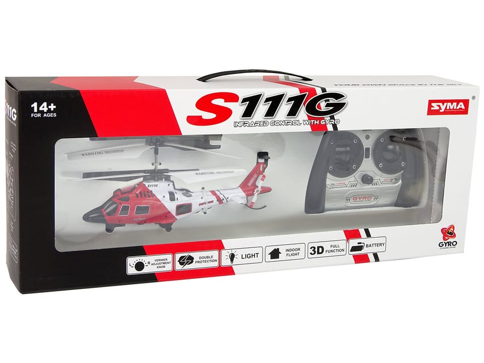 Helikopter Syma S111 GYRO to wierna kopia Agusta A109 Power. Helikopter wyposażony jest luźno zamontowane wirniki, dzięki czemu dużo trudniej uszkodzić helikopter przy upadku. Helikopter wyposażony jest w najnowszy system stabilizacji GYRO, co ma niebagatelny wpływ na łatwość sterowania lotem. Żyroskop pomaga, w utrzymywaniu żądanego położenia śmigłowca.