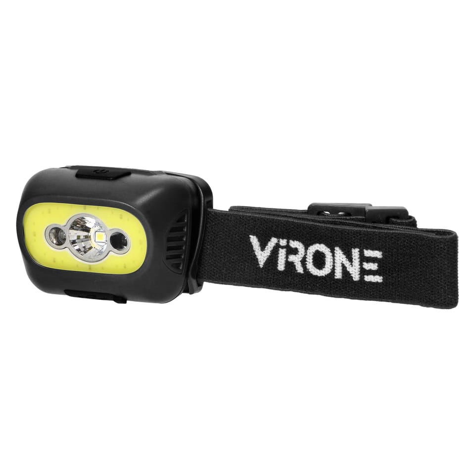 Latarka czołowa COB LED z czujnikiem ruchu, akumulatorowa, czarna