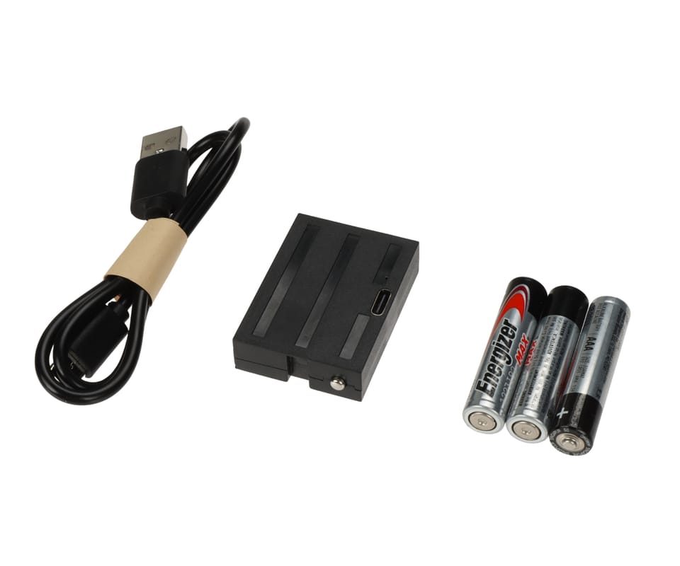 | Zasilanie: | Baterie alkaliczne : 3 szt. LR03 AAA (w komplecie) Akumulator Li : 3.7 V, 1000 mAh (w komplecie) |