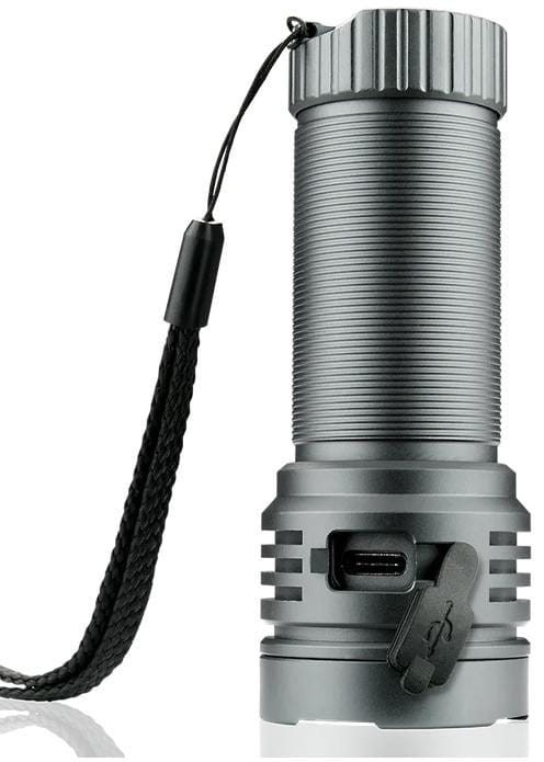 - Zawartość zestawu: latarka, akumulator (26650), kabel USB-C, smycz / zawieszka, instrukcja obsługi