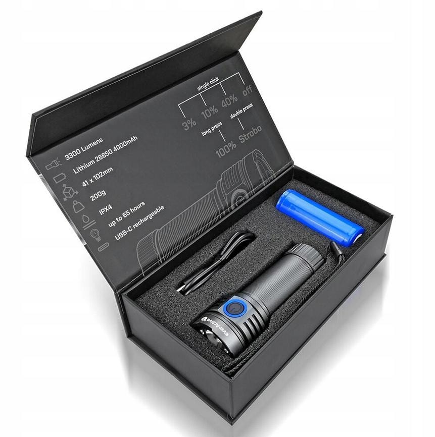 - Siła światła latarki: do 3300 lumenów (tryb boost)