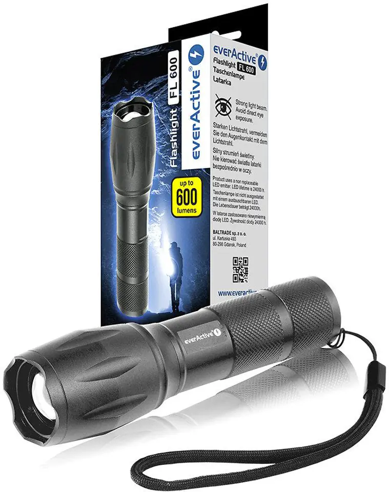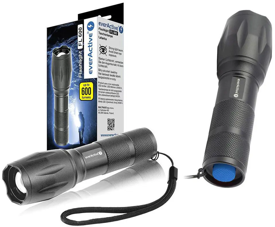 Latarka ręczna diodowa (LED) everActive FL-600 z diodą CREE XM-L2 18650 / 3x AAA (R03)