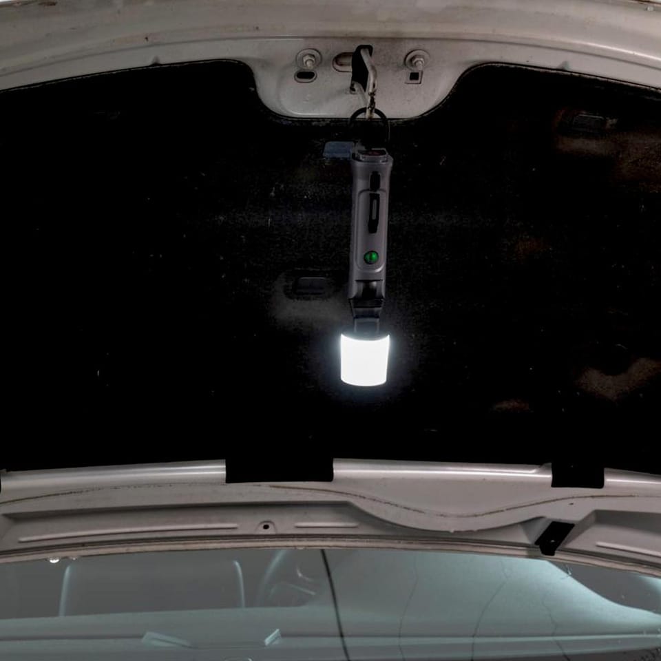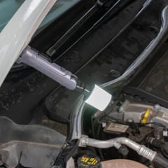 MAGNES MONTAŻOWY - wbudowany magnes pozwala przymocować latarkę do metalowych powierzchni. Umożliwia pracę bez użycia rąk. To praktyczne rozwiązanie podczas napraw samochodowych.