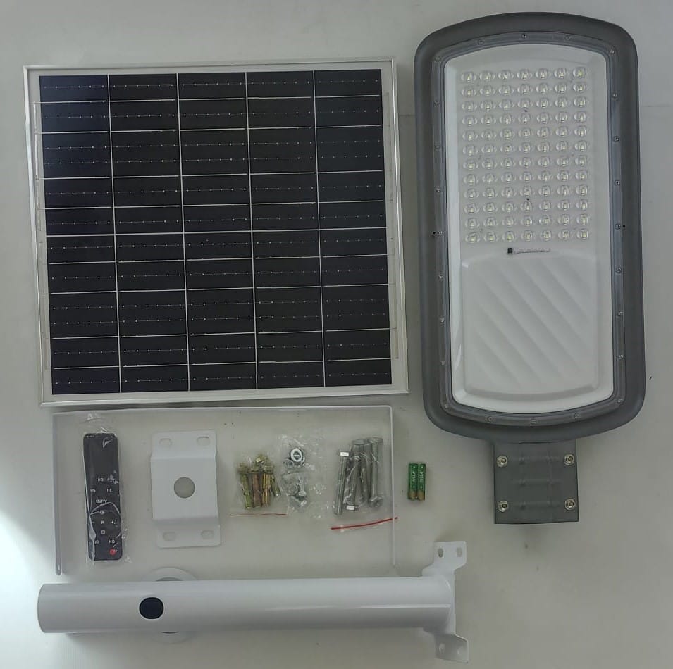 LATARNIA SOLARNA LED 100W LAMPA ULICZNA PARKINGOWA OGRODOWA Z WBUDOWANYM AKUMULATOREM