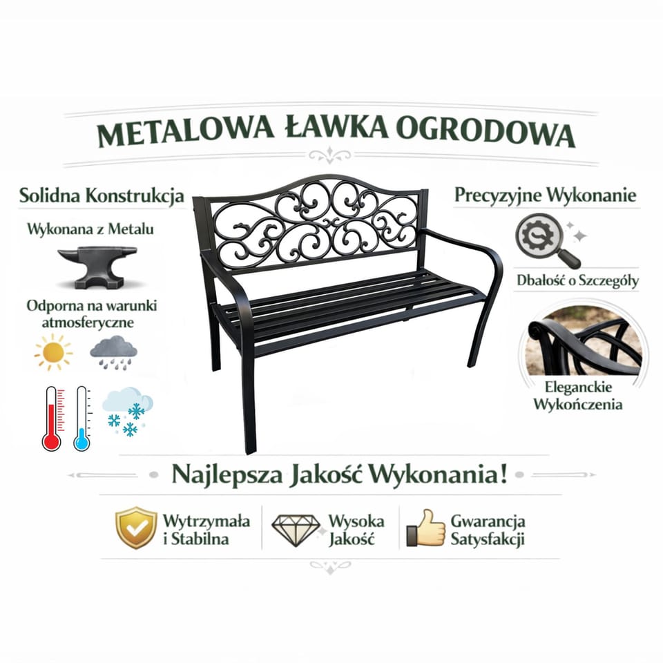 METALOWA ŁAWKA OGRODOWA 3 OSOBOWA CZARNA OZDOBNA TARAS OGRÓD