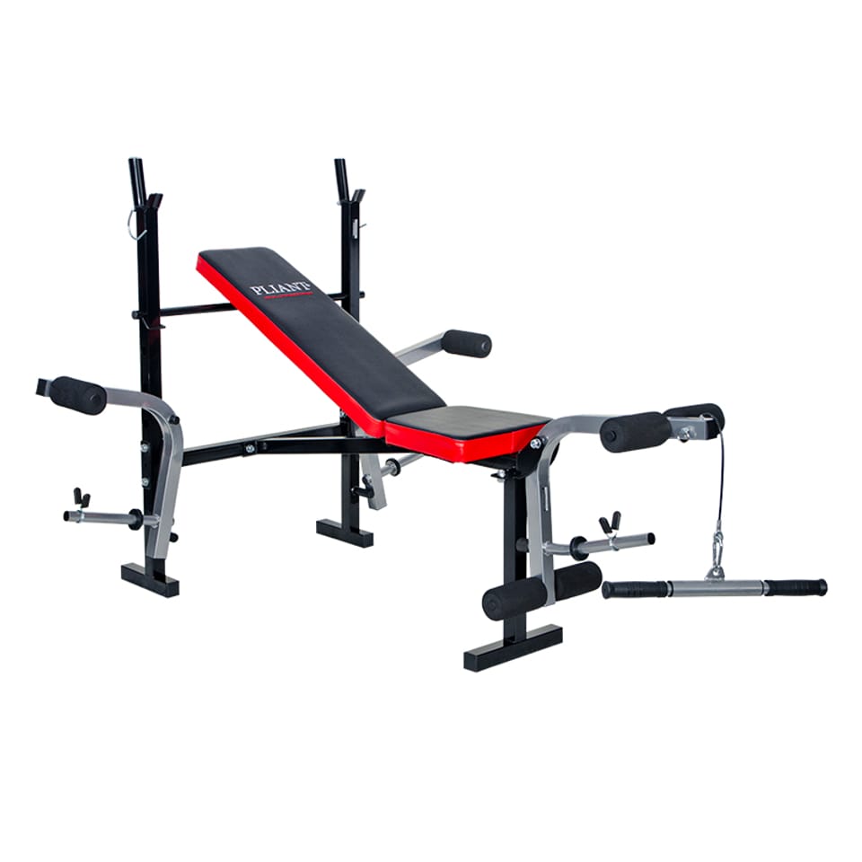 Kompaktowa, solidna i wytrzymała ławeczka do treningu siłowo wytrzymałościowego. Idealna do codziennego treningu w domowej siłowni lub na start przygody z rozbudową masy mięśniowej. Wytrzymała stalowa rama o profilu 4 x 4 cmSiedzisko i oparcie ławki wykonane ze sklejki obitej tapicerkąze skóry syntetycznejRegulacja kąta nachylenia oparcia -20° +45°Stojak o rozstawie 55 cm dla gryfów o dł. od 120 cmWyciąg do ćwiczenia bicepsówPrzyrząd do ćwiczeń nógPrzyrząd do ćwiczeń mięśni motylkowych (butterfly)Dopuszczalne obciążenie stojaka pod sztangę: 80 kgDopuszczalne obciążenie przyrządu do ćwiczenia nóg: 40 kgDopuszczalne obciążenie butterfly: 15 kg na każde ramięWymiary ławki (dł./szer./wys.) – 145/56/122 cmWymiary oparcia (dł./szer.) – 78/25 cmWymiary siedziska (dł./szer.) – 30/40 cm