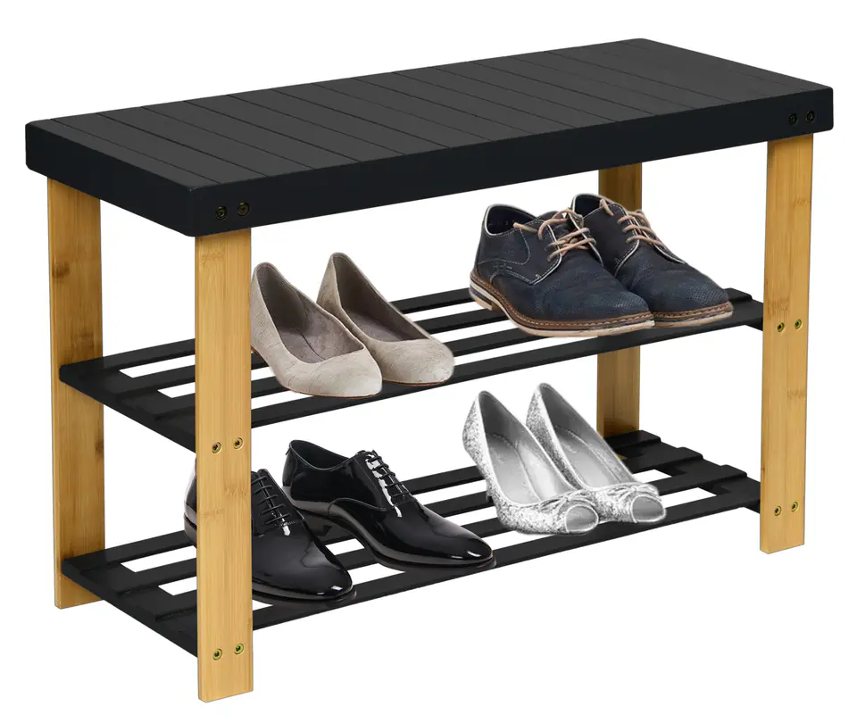 Ławka bambusowa z półkami na buty MILOSPrzeznaczenie: łazienka, korytarz, salon, hall | Kolory: naturalny bambus, siedzisko w kolorze czarnym Uniwersalny mebel wykonany z przyjaznego dla środowiska 100% naturalnego bambusa. Posiada dwie półki na buty i wygodne siedzisko. Całość lakierowana, dzięki czemu jest łatwa w czyszczeniu i odporna na działanie wilgoci. Ławka starannie wykonana, gładka z zaokrąglonymi krawędziami. Praktyczny regał na buty z siedziskiem znajdzie swoje zastosowanie w wielu pomieszczeniach. Mebel sprawdzi się w przedpokoju, korytarzu, sypialni, kuchni czy łazience. Cechy produktuWykonana z przyjaznego dla środowiska 100% bambusa naturalnego, dobrze wykończona, przyjazna dla środowiska i wytrzymała.Regał na buty w oryginalnym kolorze bambusa, doskonale pasuje do każdego stylu wyposażenia.Dwa poziomy z odpowiednim odstępem zapewniają miejsce na maksymalnie 6 par butów, regał na buty może być używany również jako ławka, można też na nim stawiać rośliny, torby lub akcesoria łazienkowe.Lakierowanie sprawia, że jest odporna na wilgoć i łatwa do czyszczenia; zaokrąglone krawędzie i ukryte śruby zapobiegają urazom.Idealnie nadaje się do przedpokoju, korytarza, sypialni, kuchni, łazienki, na balkonObciążenie maksymalne 100 kgWymiary produktuWysokość 45 cmSzerokość 68,5 cmGłębokość 28 cmOdstęp półek 18 cm Informacje dodatkowePrzedstawione kolory należy traktować poglądowo - mogą odbiegać od rzeczywistych ze względu na różne ustawienia monitorów oraz proces obróbki zdjęć. Rzeczywiste wymiary mogą się różnić od podanych wyżej. Tolerancja błędów może wynosić +/- 5%. Marka:GockowiakKod produktu:321621Kolor:naturalny bambus, siedzisko czarny połyskWysokość: 45 cmSzerokość:68,5 cmGłębokość:28 cmDo samodzielnego montażutak