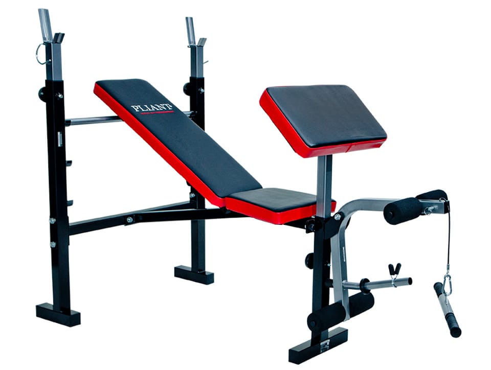 To bardzo funkcjonalny sprzęt siłowy umożliwiający rozbudowę różnych partii ciała. Wykonując regularnie ćwiczenia na ławce ze sztangą, hantlami i przy użyciu przyrządu do nóg, w krótkim czasie nastąpi duży progres. Wzmocnione zostaną mięśnie klatki piersiowej, barków i ramion. Rozwiną się nogi, plecy i pośladki. Taki trening korzystnie wypłynie także grzbiet oraz partie stabilizujące miednicę. SPECYFIKACJA: - wytrzymała stalowa rama o profilu 38 x 38 mm- czterostopniowa regulacja kąta nachylenia oparcia -20° +45°- pięciostopniowa regulacja wysokości stojaków pod sztangę w zakresie 100-120 cm- przyrząd do ćwiczenia nóg i bicepsów- modlitewnik z trzystopniową regulacją wysokości w zakresie 92-102 cm- dopuszczalne obciążenie stojaka pod sztangę: 120 kg- rozstaw wewnętrzny stojaka: 62cm- dopuszczalne obciążenie przyrządu do ćwiczenia nóg: 60 kg- maksymalna waga użytkownika: 90 kg- wymiary ławki (dł./szer./wys.) – 160/71/124 cm