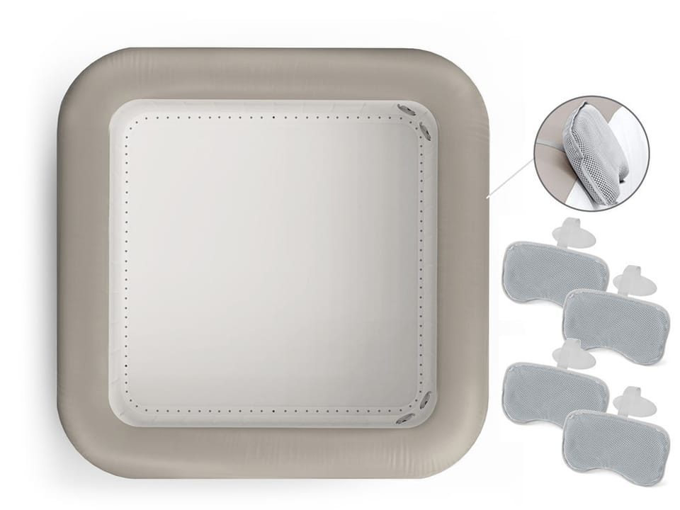obudowa SPA, pokrywa basenowa, ogrzewacz spa połączony z pompą wysokiego ciśnienia, jeden dozownik ChemConnect™, jeden wkład filtra (VI), zestaw naprawczy, 4 poduszki, pompka ręczna system HydroJet™, kolorowe opakowanie.