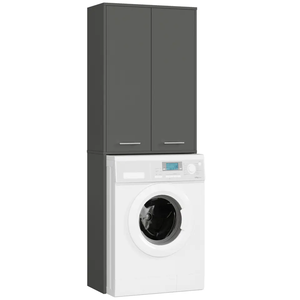 Chcąc, aby nasza łazienka była urządzona komfortowo, a zarazem stylowo, powinniśmy postawić na solidnie oraz funkcjonalnie wykonane meble. Takim z pewnością jest szafka nad pralkę. To idealny sposób na zagospodarowanie miejsca nad pralką, które zazwyczaj pozostaje niewykorzystane. Optymalne wymiary tego słupka sprawiają też, że jest świetnym rozwiązaniem do łazienek o małym metrażu. Ergonomiczny kształt umożliwia jego wykorzystania w każdym pomieszczeniu. Mebel ten składający się z nadstawki nad pralkę i znajdującej się nad nimi szafki tworzy sporą ilość miejsca do przechowywania różnego typu przedmiotów. W szafce schowamy artykuły takie jak detergenty czy środki higieniczne. Półki te są stworzone do przechowywania osobistych kosmetyków lub ręczników. Piękny odcień jakim jest grafit szary gwarantuje nam elegancki wystrój łazienki. Płyta laminowana, z której została wykonana ta szafka, to wysokogatunkowe tworzywo. Zapewnia ono trwałość i solidność mebla, a także zachowanie jego estetycznego wyglądu.