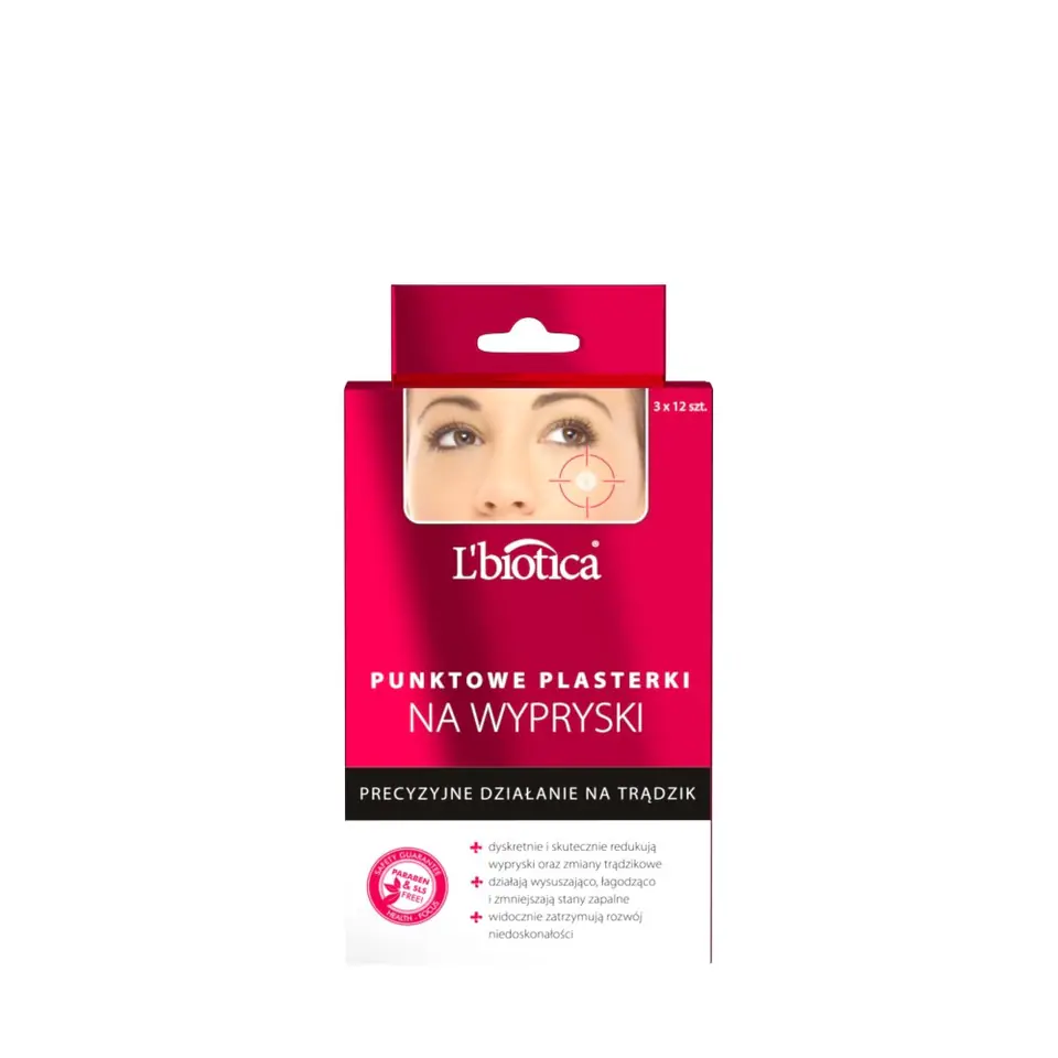 Przezroczyste, punktowe plasterki na wypryski o antybakteryjnej formule, wzbogaconej o ekstrakt z drzewa herbacianego i wierzby kanadyjskiej. Działają wysuszająco, łagodzą stany zapalne skóry, wyraźnie poprawiając jej wygląd. Produkt przeznaczony do miejscowego stosowania bezpośrednio na zmiany trądzikowe (wykwity podskórne, krosty, grudki). Dzięki praktycznej aplikacji i dyskretnej formie, plasterki można stosować w ciągu dnia. Idealne rozwiązanie dla cery problematycznej – zarówno u kobiet, jak i mężczyzn.