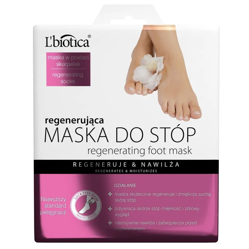 Regenerująca maska do stóp w postaci skarpet nasączonych aktywnym kremem. Profesjonalny zabieg do samodzielnego wykonania w domu. Maska na bazie naturalnych składników- masła shea, jabłka oraz mięty wygładza i silnie regeneruje suchą, spękaną i zrogowaciałą skórę stóp, znacząco poprawiając jej wygląd i kondycję. Skutecznie nawilża i odżywia nawet bardzo przesuszoną i zniszczoną skórę stóp. Sprawia, że staje się gładka, miękka i zdrowa.