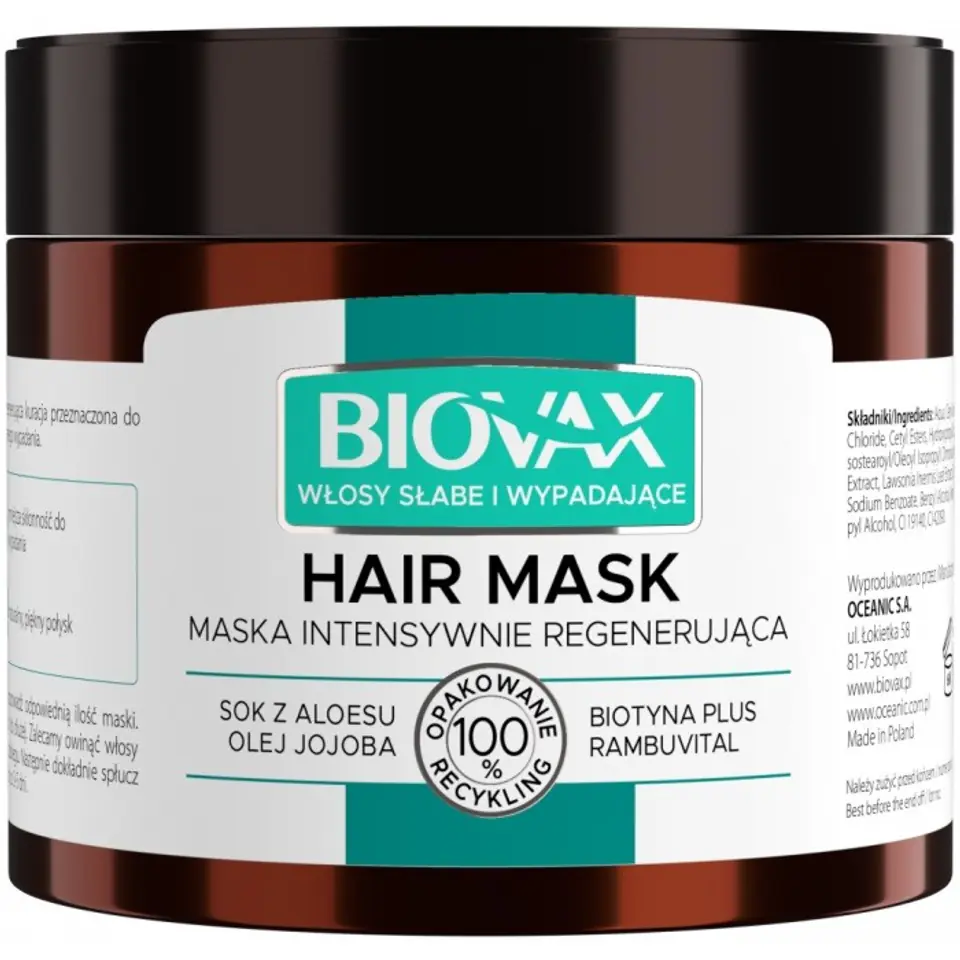 Intensywnie regenerująca maseczka Biovax® do włosów słabych i wypadających zawiera naturalne ekstrakty, witaminy i oleje, które efektywnie wzmacniają, regenerują włosy w redukują ich wypadanie.