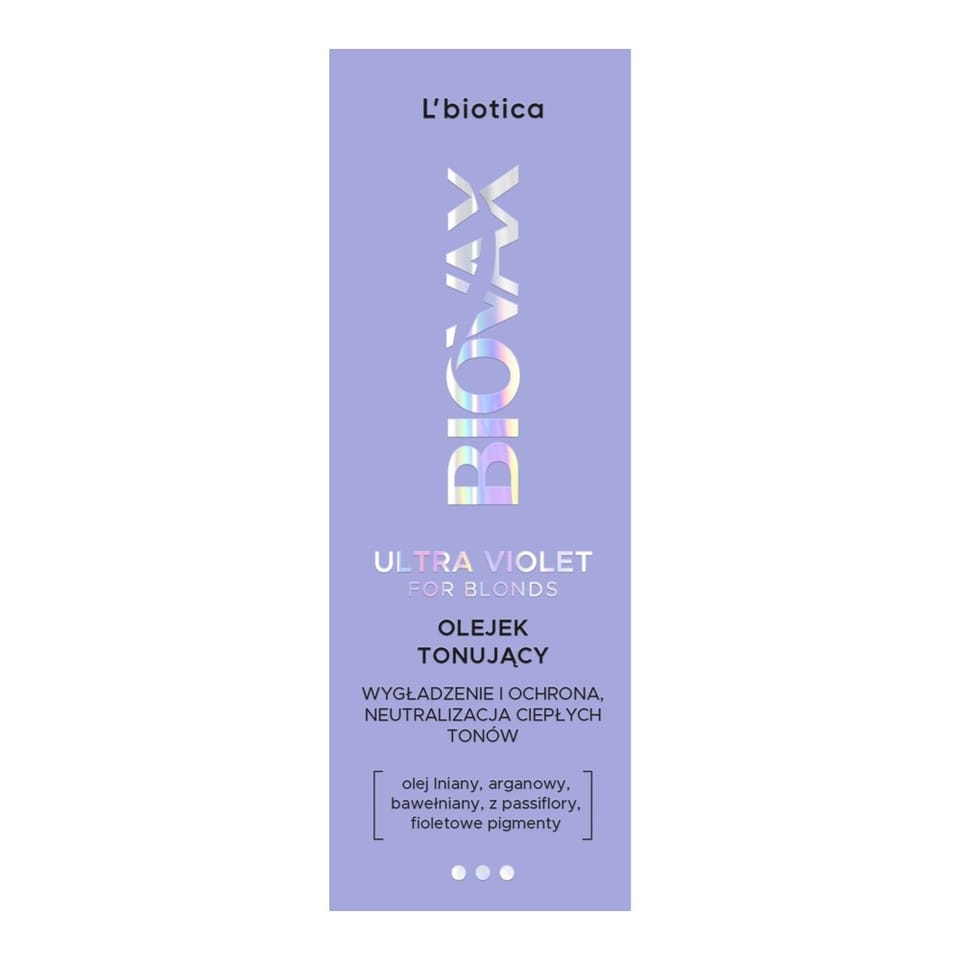 Olejek tonujący do włosów blond i siwych dzięki fioletowym pigmentom neutralizuje ciepłe, miedziane tony, przywracając chłodny kolor o pięknym blasku. Jego formuła, oparta na cennych OLEJACH: INIANYM, ARGANOWYM, BAWEŁNIANYM oraz Z PASSIFLORY, wnika w pasma, dogłębnie je pielęgnując. Włosy stają się sypkie, wygładzone, odżywione i miękkie. Olejek otula je zmysłowym zapachem, a jednocześnie pomaga utrzymać ich doskonałą kondycję między wizytami u fryzjera. Nie farbuje i nie pozostawia fioletowego odcienia