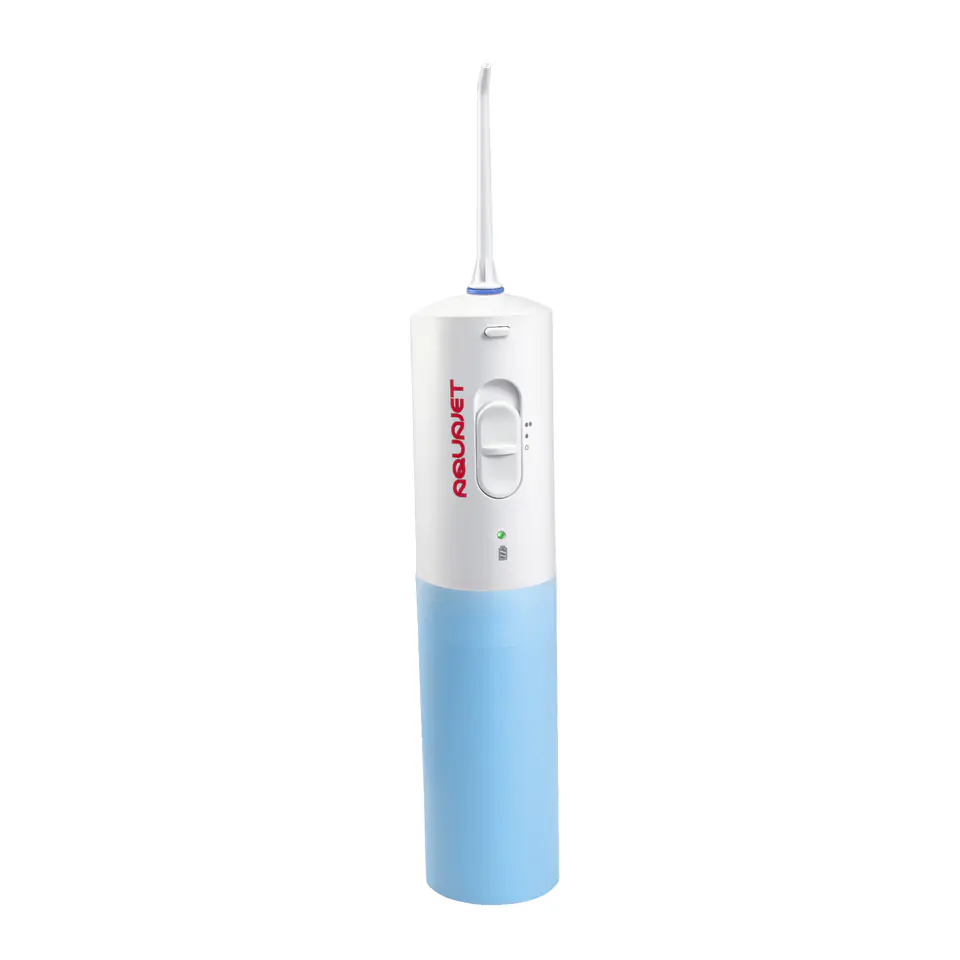 Przenośny Irygator z systemem DAF® ŚWIEŻOŚĆ I HIGIENA JAMY USTNEJ GDZIEKOLWIEK JESTEŚ! Irygator Jamy Ustnej AQUAJET LD-A3 posiadając małe wymiary zapewnia wygodę i komfort użytkowania w podróży. Pomimo kompaktowych rozmiarów Przenośny Irygator Jamy Ustnej LD-A3 nie ustępuje modelom stacjonarnym. Funkcje: Unikalny System DAF® pozwala na korzystanie z dołączonego standardowego zbiornika lub innego dowolnego pojemnika na wodę. Jeżeli pojemność standardowego zbiornika nie jest wystarczająca, umieść przewód urządzenia w innym pojemniku np.: kubku lub szklance. Masaż dziąseł i całej jamy ustnej, poprawia krążenie i zapobiega krwawieniu dziąseł. LD-A3 posiadając małe wymiary zapewnia wygodę i komfort użytkowania w podróży. Pomimo kompaktowych rozmiarów Przenośny Irygator Jamy Ustnej LD-A3 nie ustępuje modelom stacjonarnym. Akumulator można ładować z dowolnego źródła zasilania ze złączem USB. Akcesoria są łatwe do przechowywania w dołączonym zbiorniku. Pojemnik jest łatwy do napełnienia w każdych warunkach. Efektywnie oczyszcza oraz masuje dziąsła i całą jamę ustną, wymywa resztki jedzenia z przestrzeni między zębowej oraz usuwa osad nazębny. Zapewnia maksymalną ochronę protez i koron, zapobiega rozwojowi chorobotwórczej mikroflory i procesom zapalnym w styczności protezy i korony z błoną śluzową jamy ustnej, której czyszczenie konwencjonalnymi środkami jest wręcz nieosiągalne.
