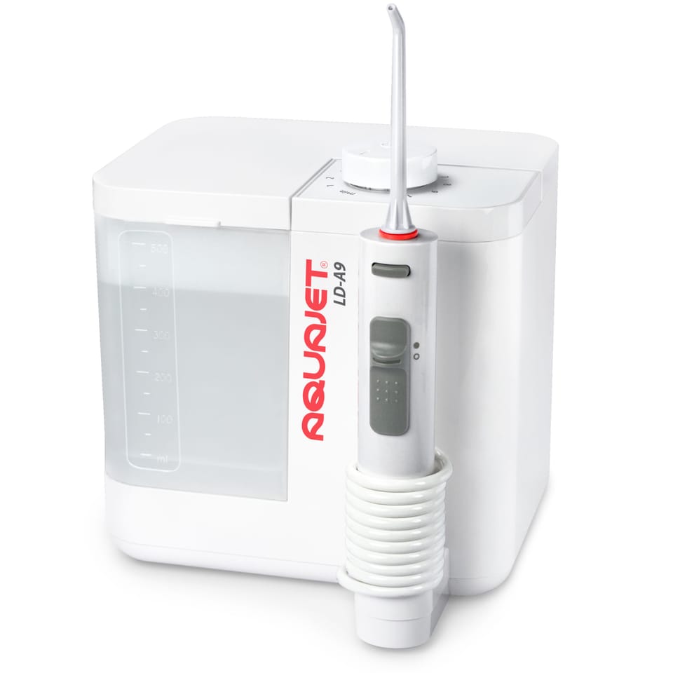 Irygator AQUAJET jest przeznaczony do leczenia i zapobiegania chorobom jamy ustnej, zapaleniu dziąseł, przyzębia oraz nawadniania medycznego i masażu błony śluzowej jamy ustnej, jak również do higieny dentystycznej urządzeń w jamie ustnej (w tym koron, implantów, protez, aparatu ortodontycznego) oraz przestrzeni między zębowych. Funkcje: Efektywnie oczyszcza oraz masuje dziąsła i całą jamę ustną, wymywa resztki jedzenia z przestrzeni między zębowej oraz usuwa osad nazębny. Pojemnik na płyn teraz można myć w zmywarce. Dzięki gładkiej powierzchni obudowa nie pokrywa się kurzem i wodą. Soft-Touch – gumowane pokrycie elementów sterujących sprawia, że korzystanie z irygatora jest łatwe i przyjemne. Masaż dziąseł i całej jamy ustnej, poprawia krążenie i zapobiega krwawieniu dziąseł. Zapewnia maksymalną ochronę protez i koron, zapobiega rozwojowi chorobotwórczej mikroflory i procesom zapalnym w styczności protezy i korony z błoną śluzową jamy ustnej, której czyszczenie konwencjonalnymi środkami jest wręcz nieosiągalne. Regulacja ciśnienia strumienia. Możliwość montażu na ścianie.