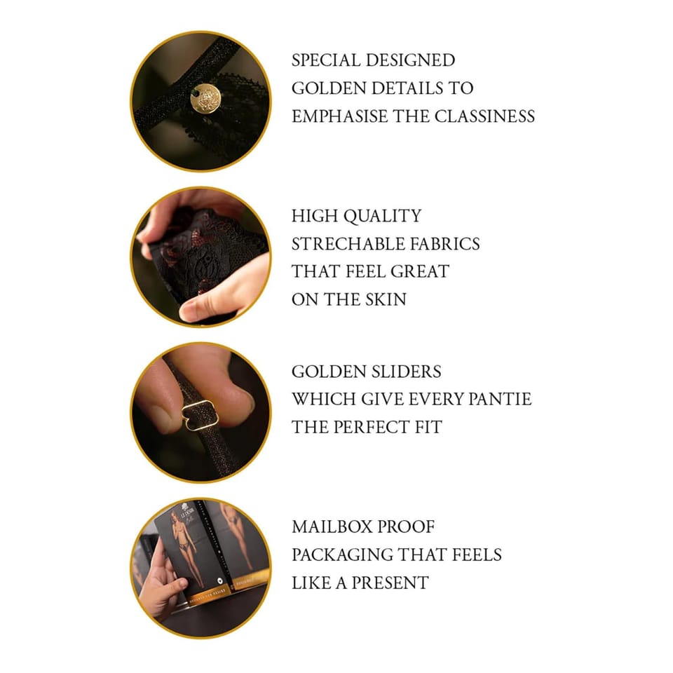 Poznaj model Le Desir Aime – eleganckie stringi na paski, stworzone z myślą o osobach ceniących połączenie subtelności z nowoczesnym wzornictwem. Czarna konstrukcja oparta na elastycznych paskach zapewnia optymalne dopasowanie do sylwetki oraz podkreśla kształty, oferując przy tym pełnię komfortu podczas noszenia. Ozdobna kokardka z przodu dodaje całości wyjątkowego, dekoracyjnego charakteru.