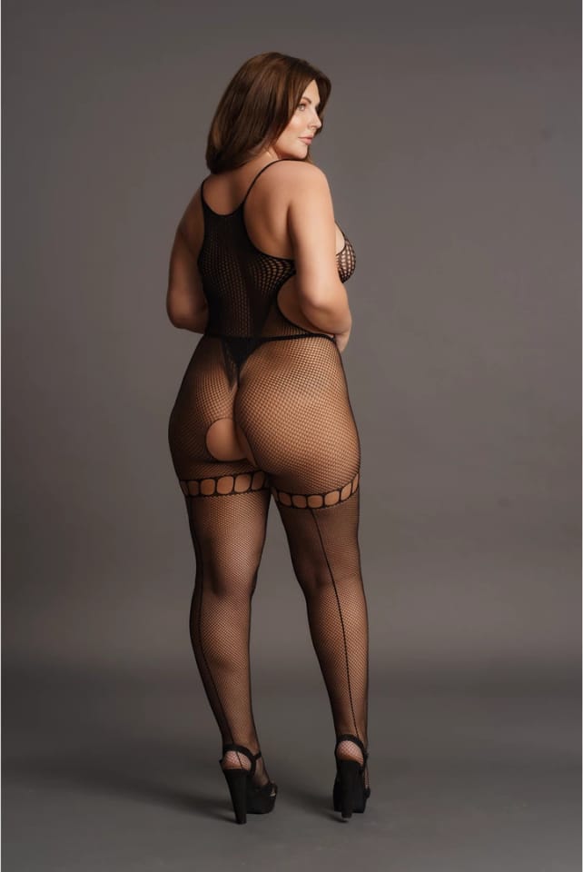 Le Desir Bodystocking Plus Size – wyrafinowana siateczka z otwartymi bokami