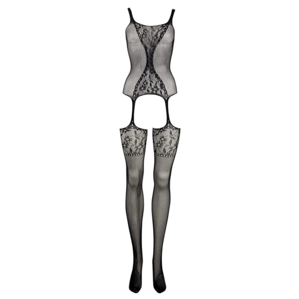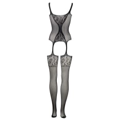 Bodystocking do pończoch z połączeniem siateczki i koronki.