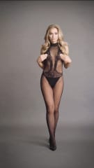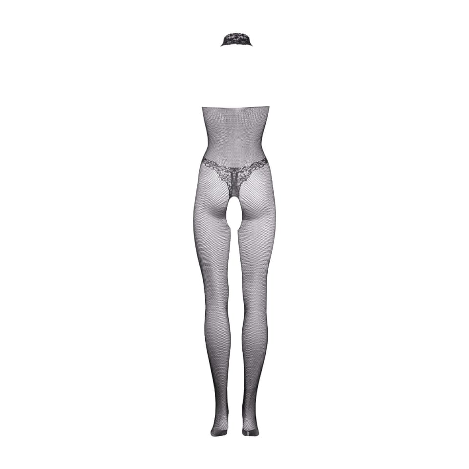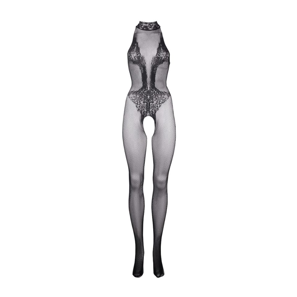Bodystocking z połączeniem koronkowego wzoru i kabaretki.
