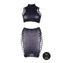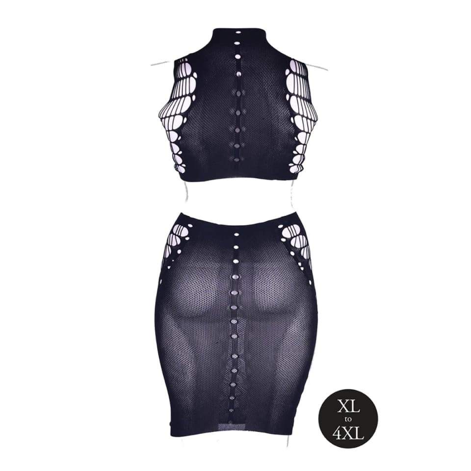 - Ten crop-top i spódnica wyglądają szorstko i stylowo z przodu, ale są gustownie seksowne z boku.