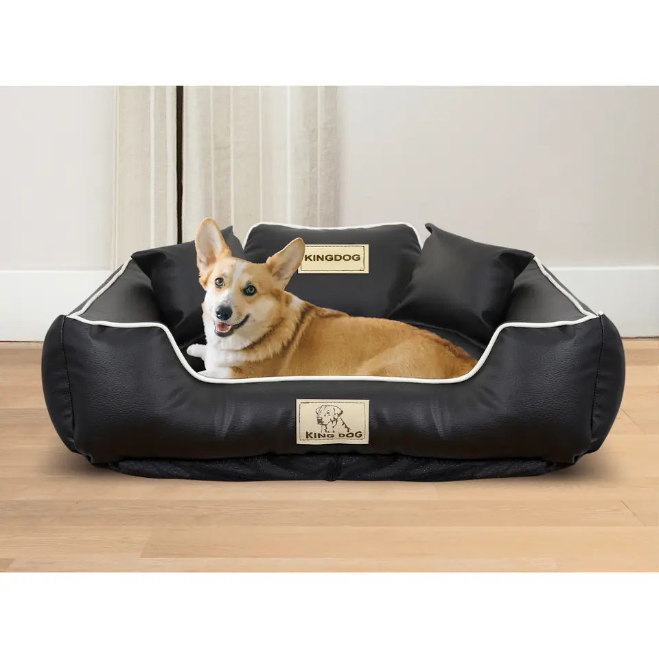 Legowisko rozbieralne antypoślizgowe ekoskóra 75x65cm czarne KingDog
